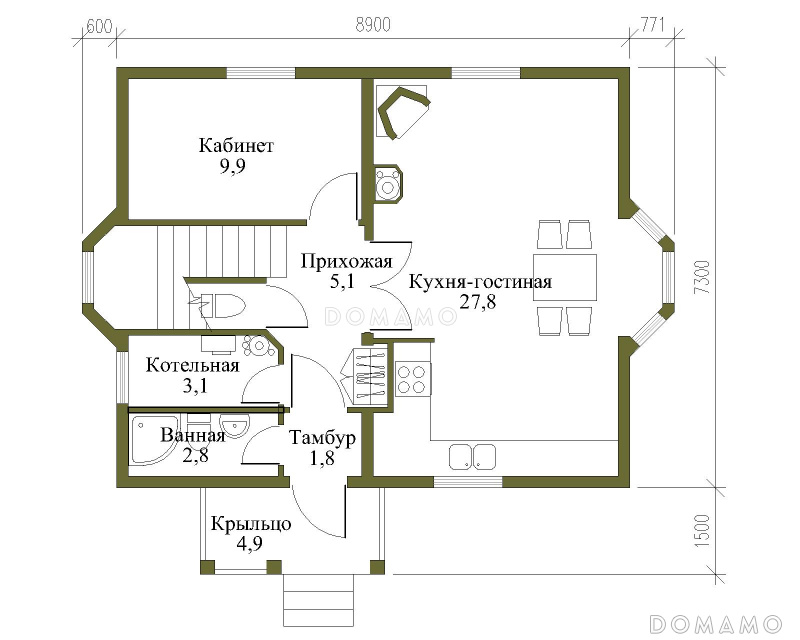 Дом D100 Проект экономичного дома из бруса