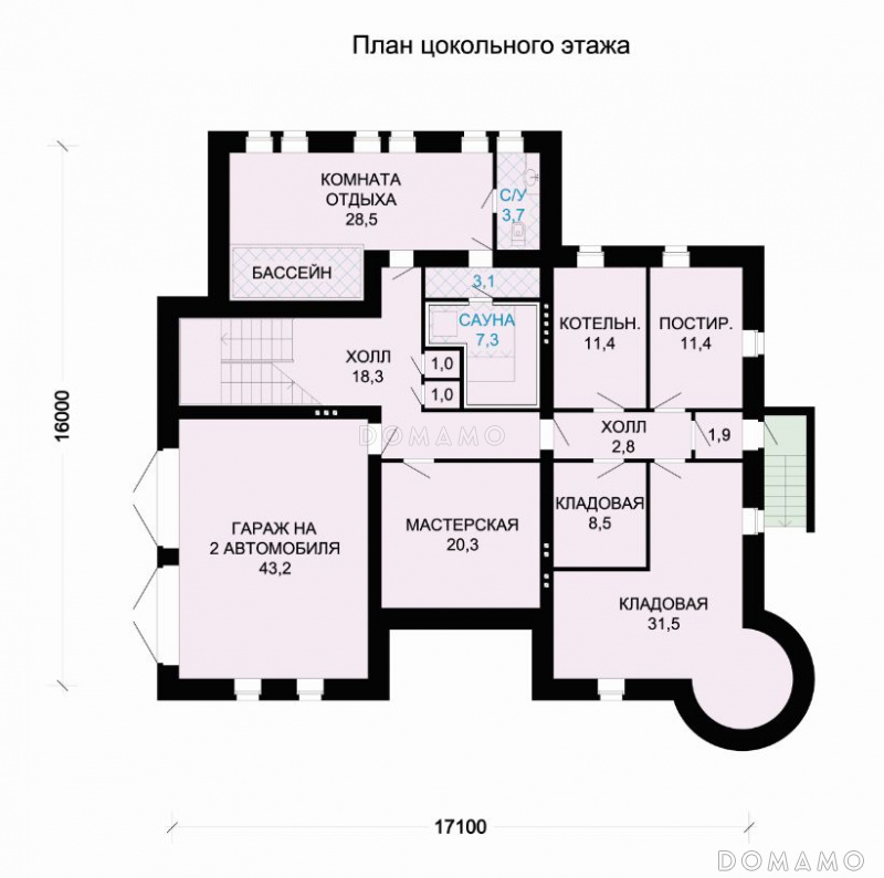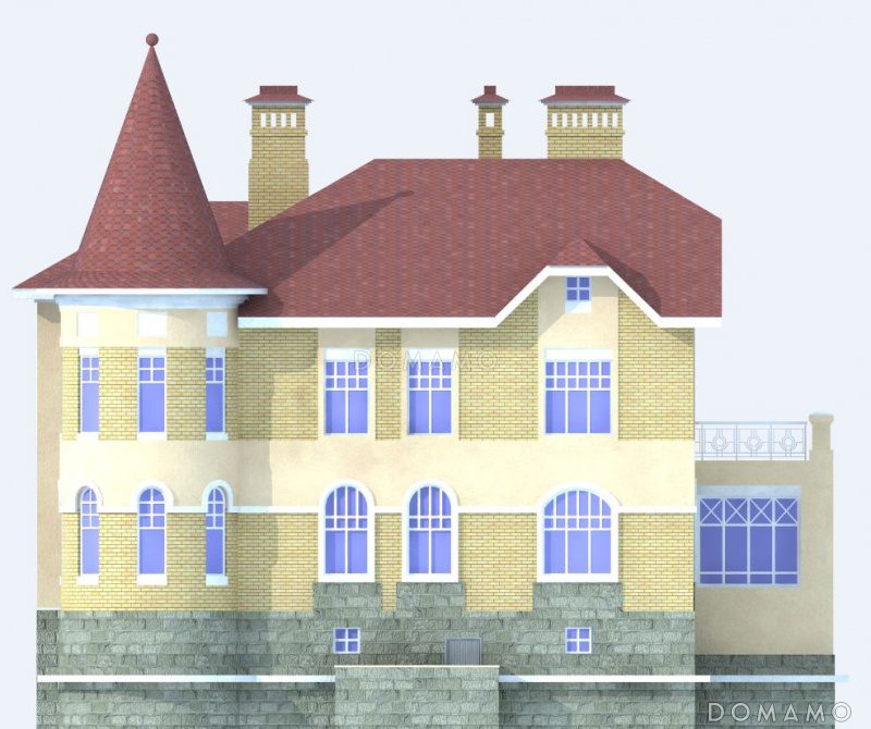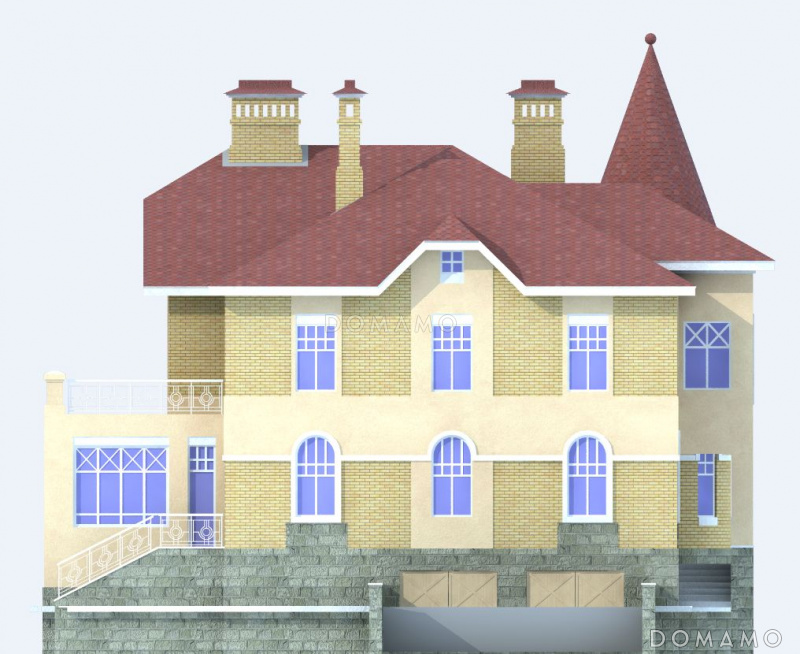 Дом D1078 Проект кирпичного дома с гаражом на цокольном этаже