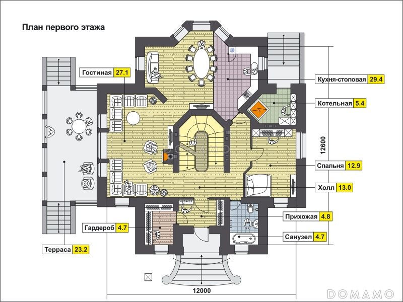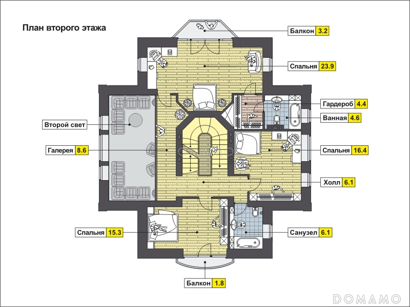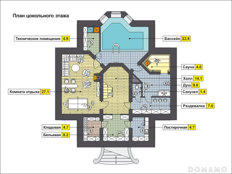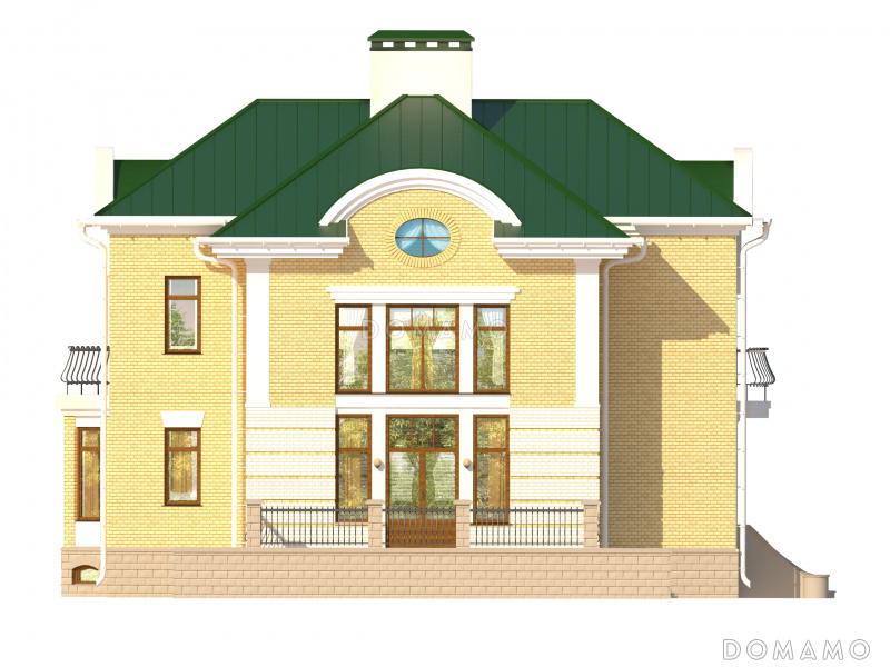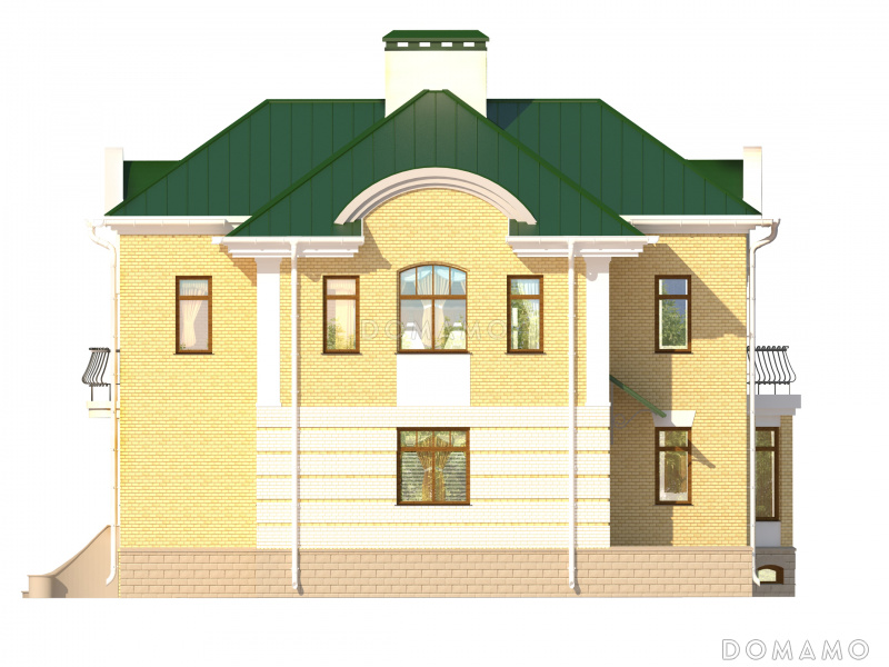 Дом D1152 Проект дома с эркером, цокольным этажом с окнами, бассейном и сауной, вторым светом, спальней с балконом