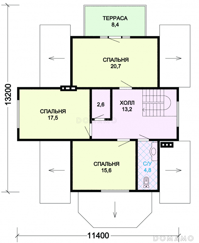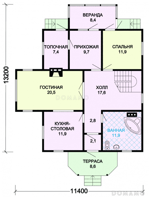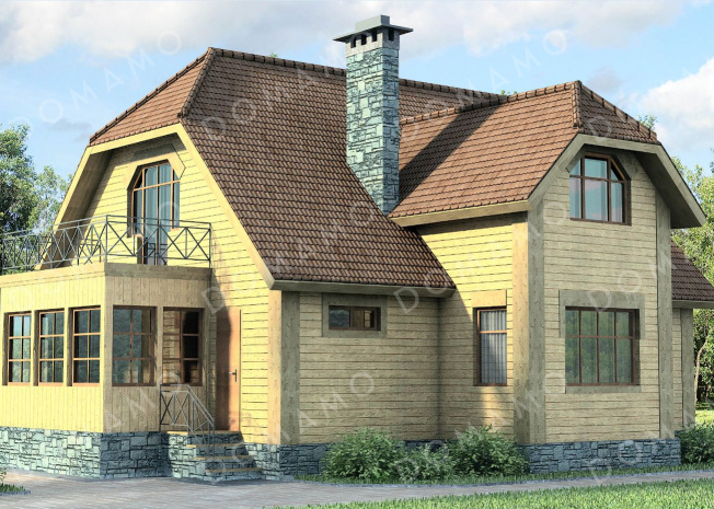 Дом D1378 Проект деревянного дома с квадратной ванной комнатой