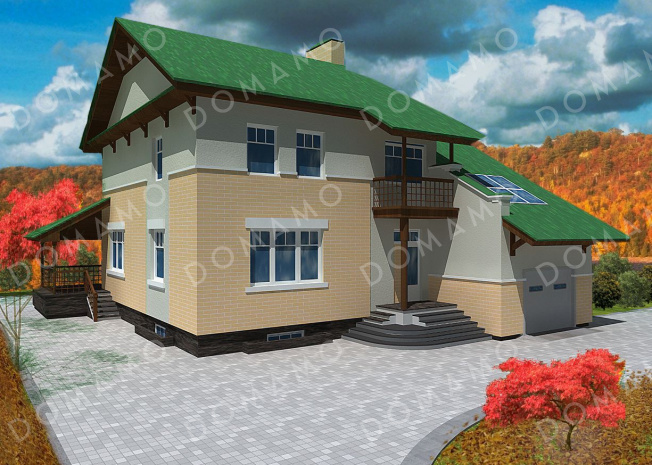 Дом D1468 Проект дома из пенобетона с гаражом и просторной гостиной
