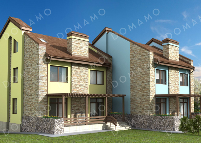 Дом d147 Проект жилого дома для сблокированного строительства на площадке с рельефом