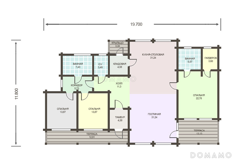 | Только вводы воды, электричества, выводы канализации |