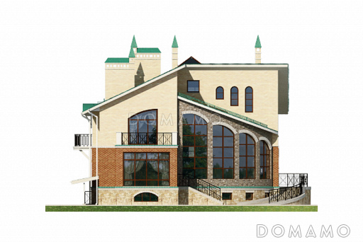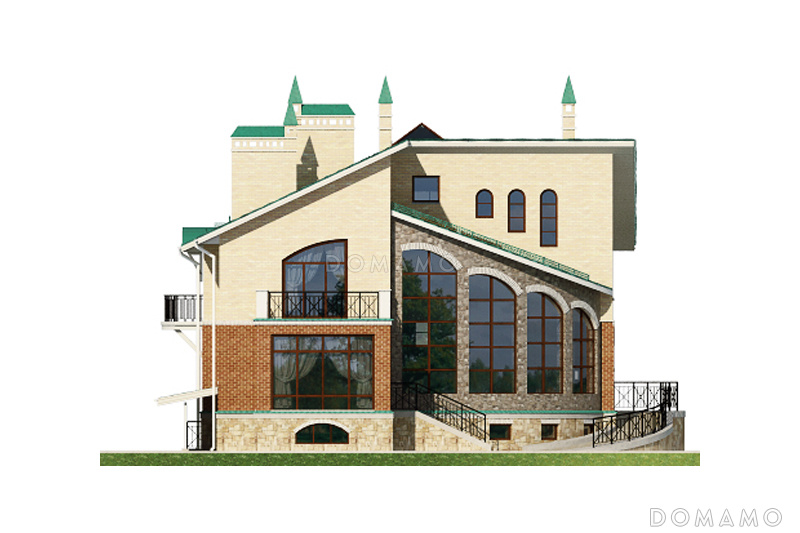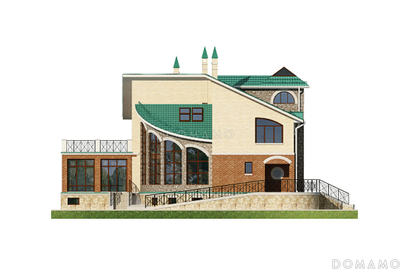 Проект четырехэтажного дома с необычной формой в плане, двусветной гостиной и бассейном