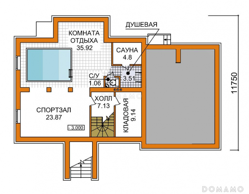 Проект дома из пеноблоков с бассейном, спортзалом и небольшой сауной