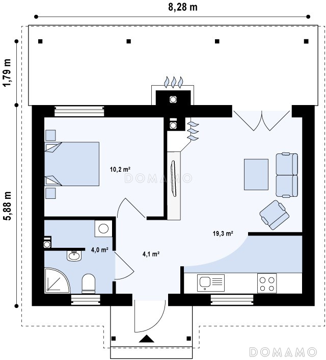 Дом D1577 Проект маленького уютного одноэтажного дома из кирпича для круглогодичного проживания
