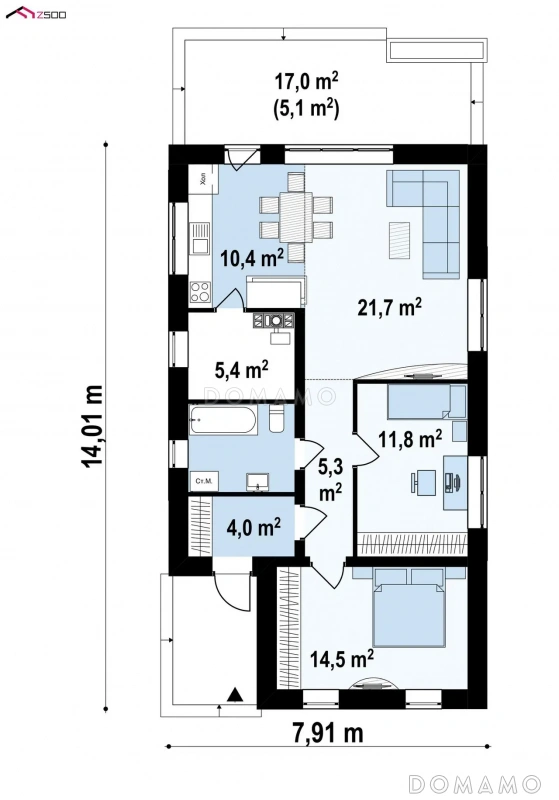Дом D2148 Проект компактного одноэтажного дома из кирпича для небольшой семьи
