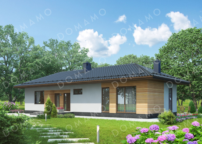Проект одноэтажного дома из SIP панелей с большими окнами в гостиной