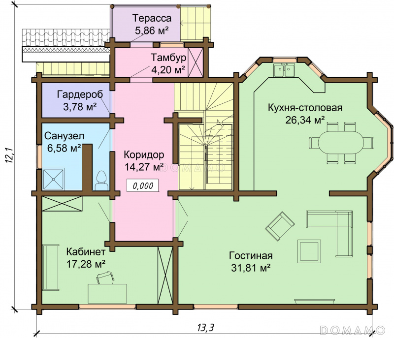 Проект одноэтажного дома из бруса с мансардным и цокольным этажами