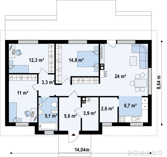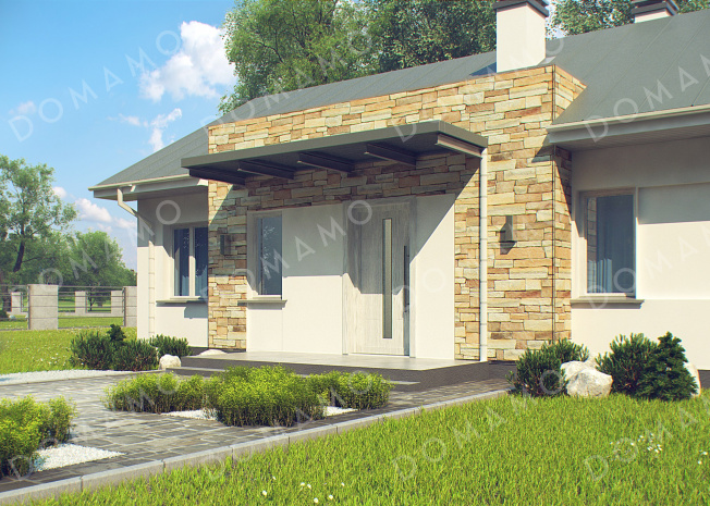 Дом D2742 Проект простого компактного одноэтажного дома из кирпича с тремя спальнями