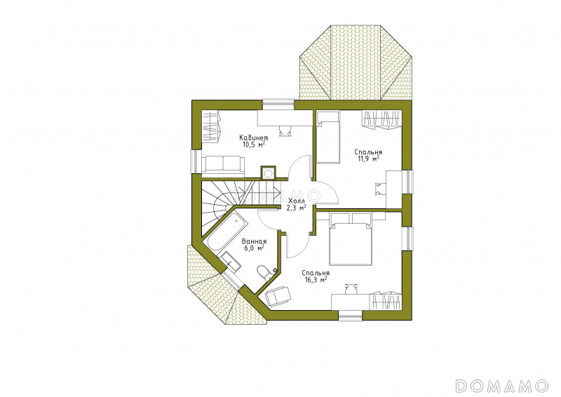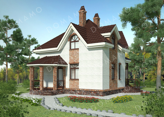 Дом D294 Проект квадратного кирпичного коттеджа со входом с угла