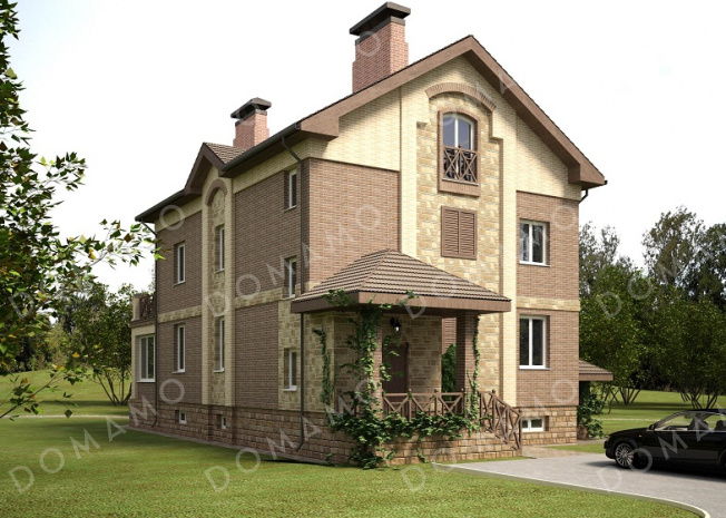 Дом D299 Проект большого кирпичного коттеджа с верандой, сауной и СПА-залом
