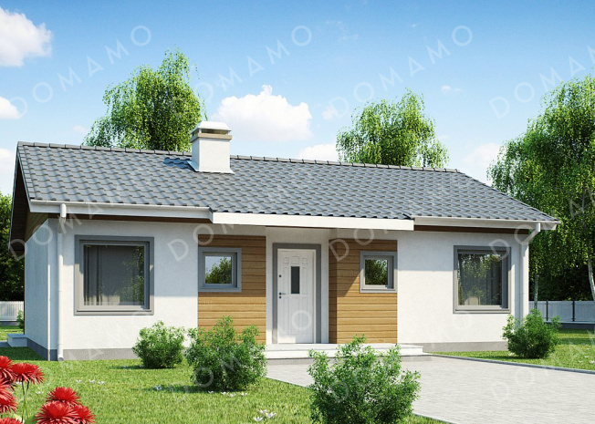 Дом D3161 Проект компактного одноэтажного дома из кирпича с тремя спальнями и небольшой крытой террасой