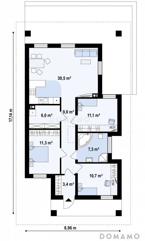 | Только вводы воды, электричества, выводы канализации |