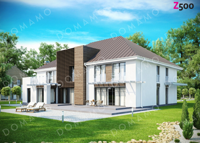 Дом D3275 Проект большого комфортабельного двухэтажного дома из кирпича с пятью комнатами, спортзалом и вторым светом над просторной гостиной