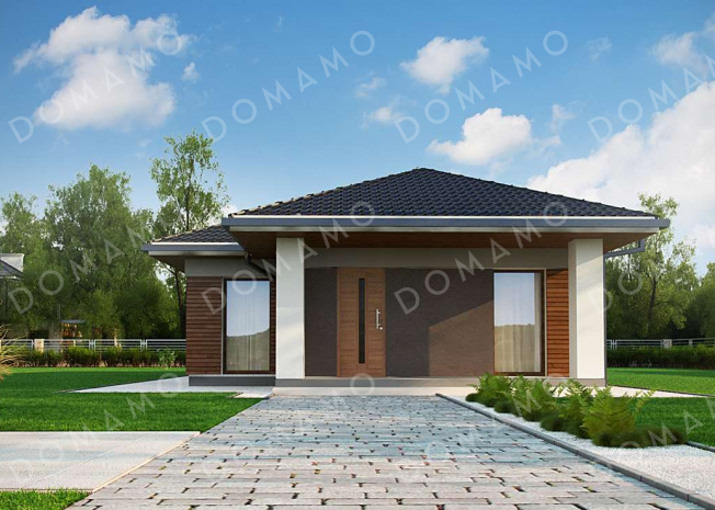 Дом D3408 Проект простого комфортного одноэтажного дома из кирпича с тремя спальнями