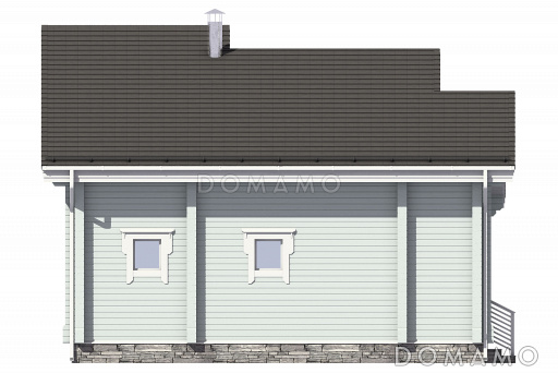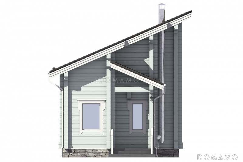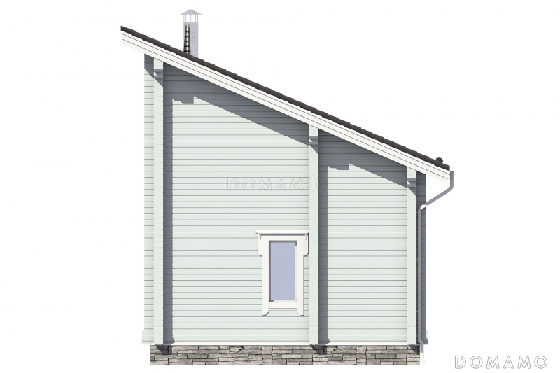 Дом D3547 Проект узкого дома с косой крышей, кухней-гостиной, парной, спальней, балконом и вторым светом