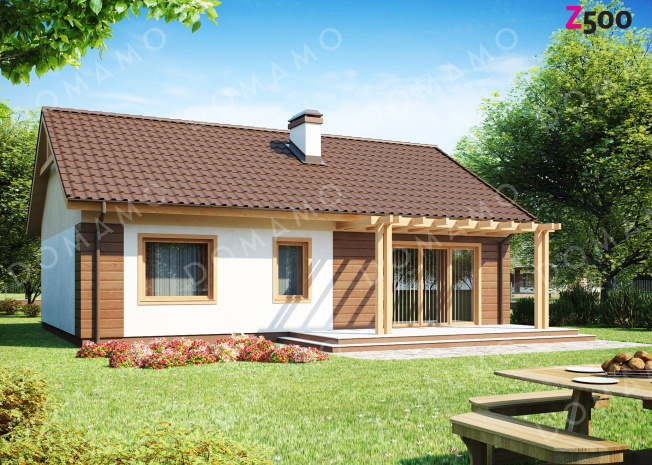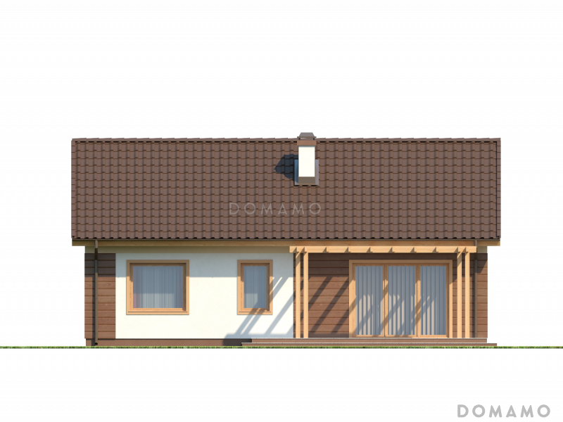 Дом D3609 Проект одноэтажного дома из кирпича с тремя спальнями и террасой
