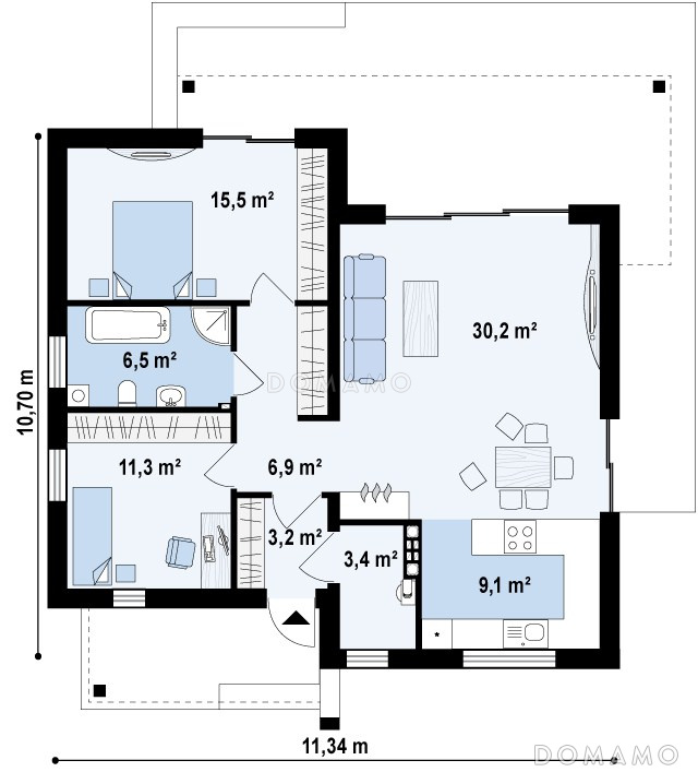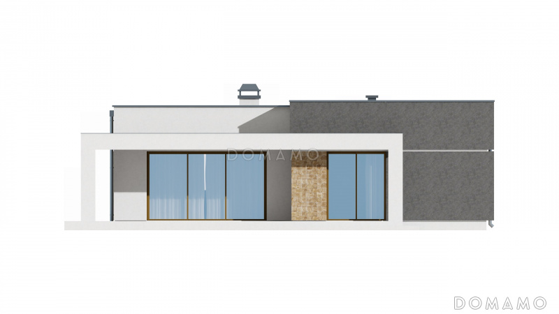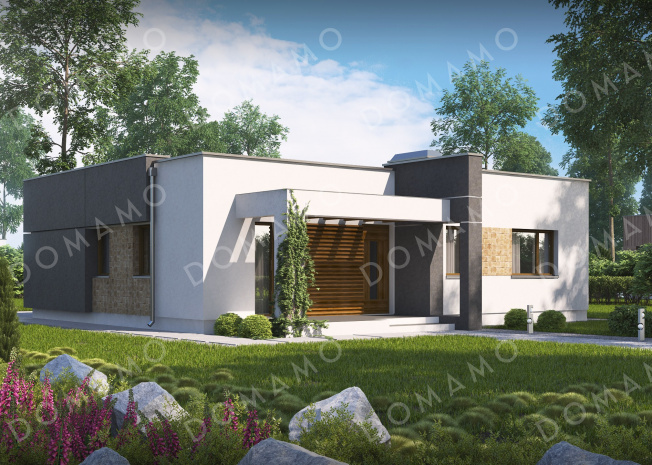 Дом D3656 Проект небольшого современного одноэтажного дома из кирпича с двумя спальнями и красивой террасой