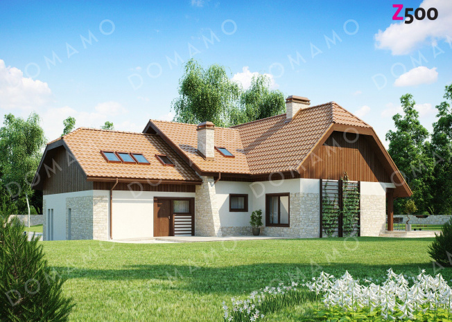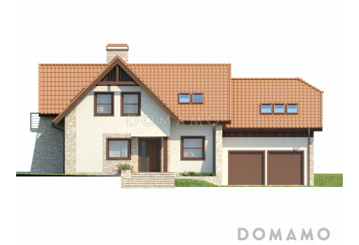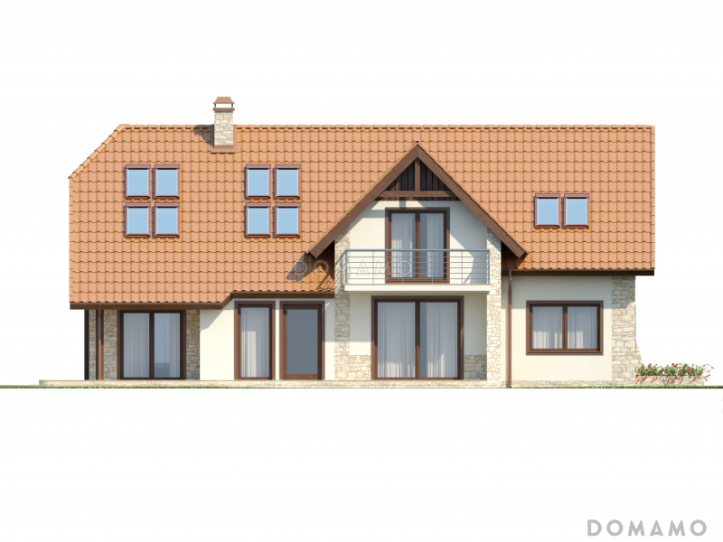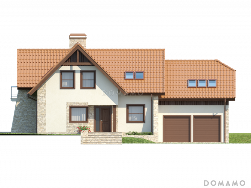Дом D3830 Проект просторного мансардного коттеджа из кирпича с пятью спальнями, кабинетом и гаражом