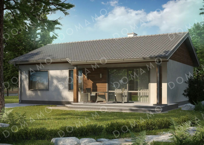 Дом D3865 Проект одноэтажного кирпичного дома с просторной гостиной и 3 спальнями