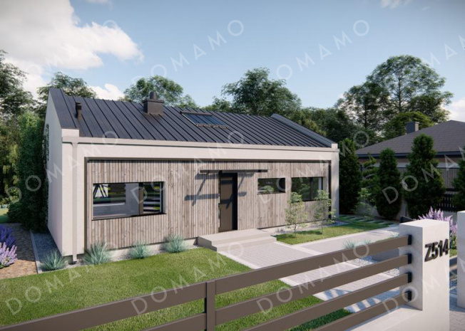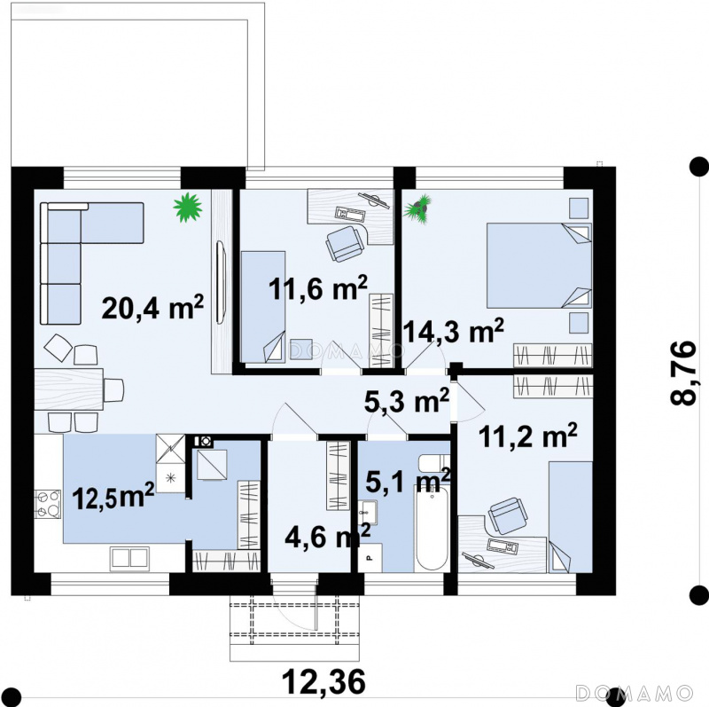 Дом D4113 Проект элегантного загородного дома с помещениями на одном этаже, двухскатной крышей, тремя спальнями, кладовой на кухне