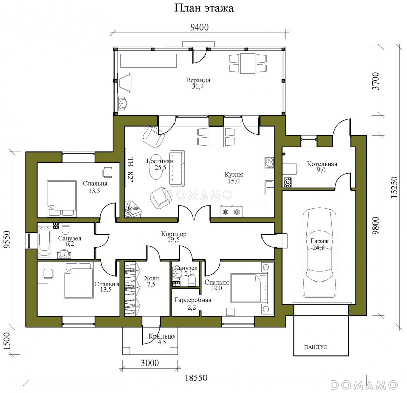 | Разводка батарей и/или системы теплого пола. Без оборудования котельной. |
