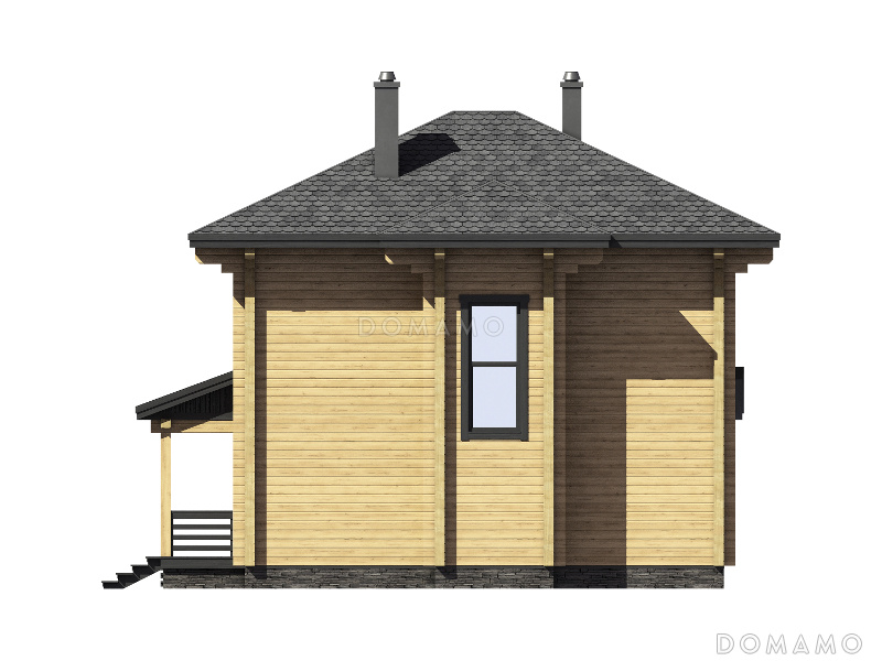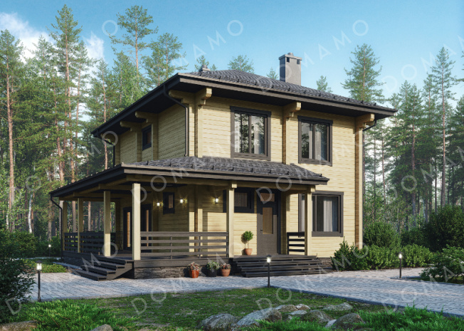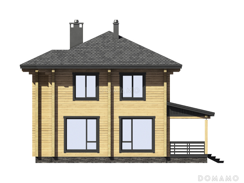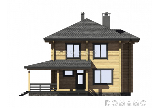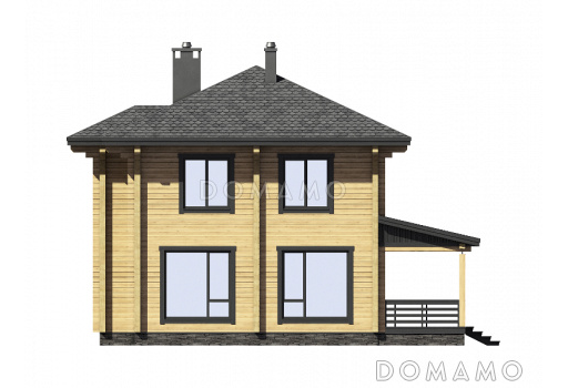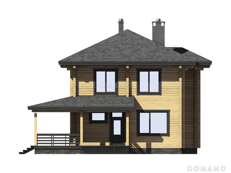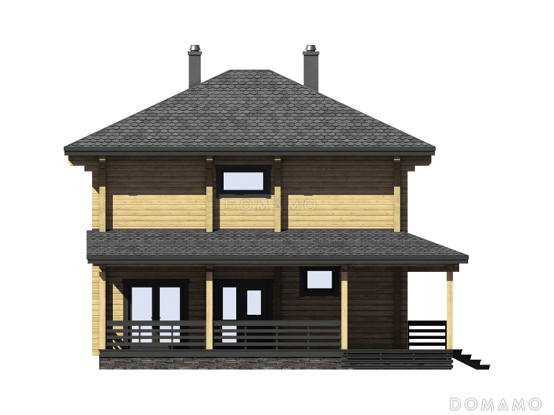 Дом D4569 Проект двухэтажного дома из бруса с четырьмя спальнями, кабинетом и крытой террасой
