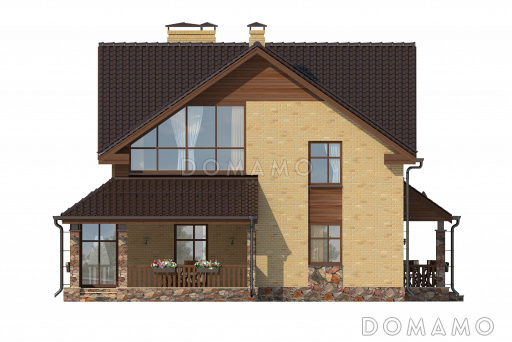 Дом D46 Проект дома с просторной гостиной и кухней столовой, террасой с барбекю, зимним садом, двумя балконами,