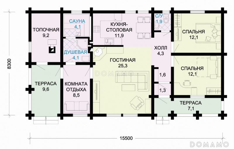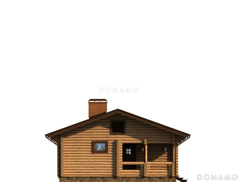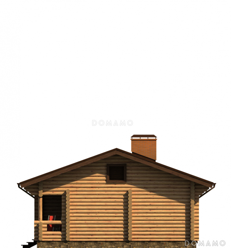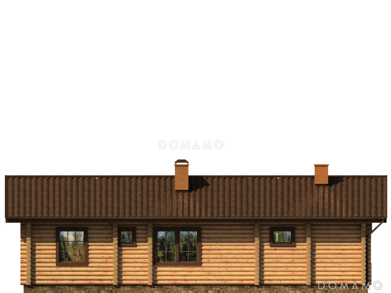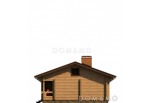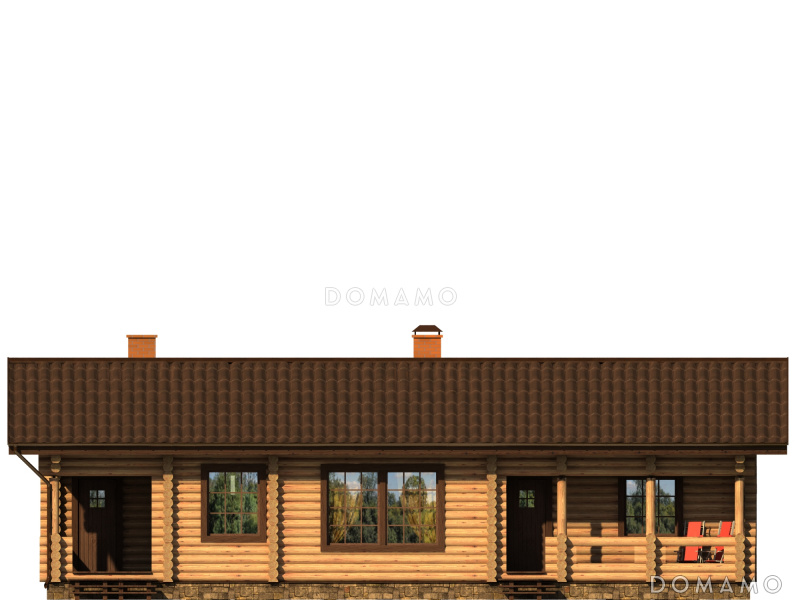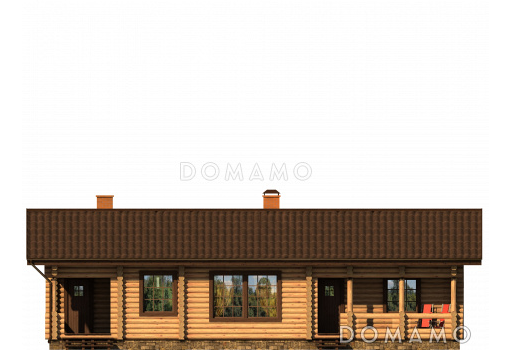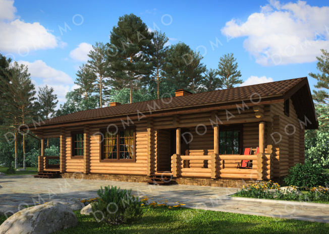 Проект одноэтажного лаконичного дома из оцилиндрованного бревна с просторной гостиной