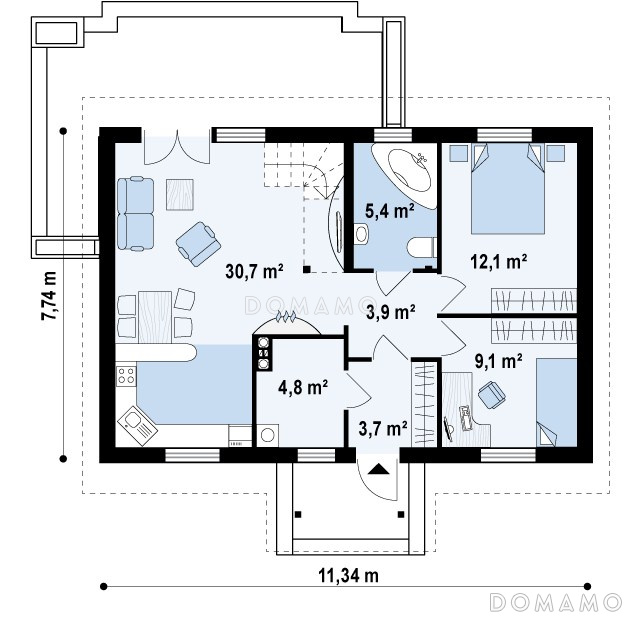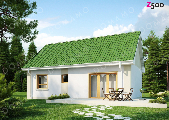 Дом D4675 Проект компактного одноэтажного дома из кирпича с двумя спальнями, с возможностью обустроить мансарду