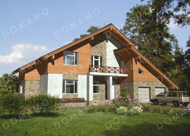 Проект дома из панелей СИП с комбинированной отделкой фасада