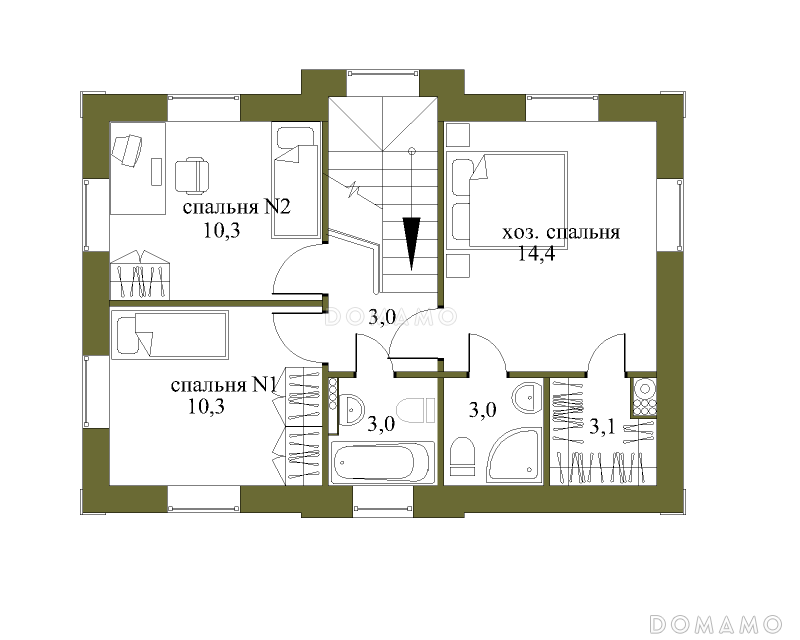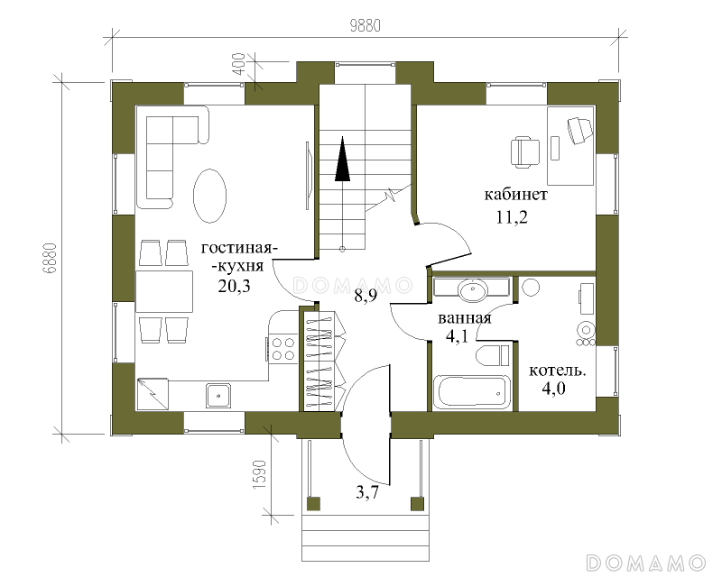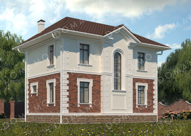 Дом D4847 Проект небольшого двухэтажного особняка из SIP панелей с парадным фасадом