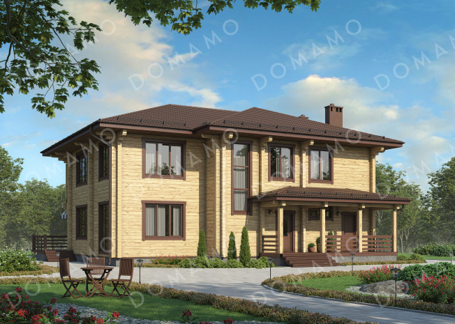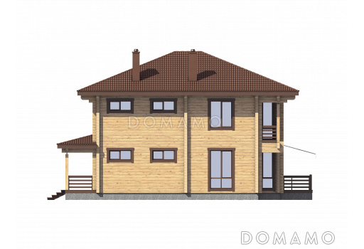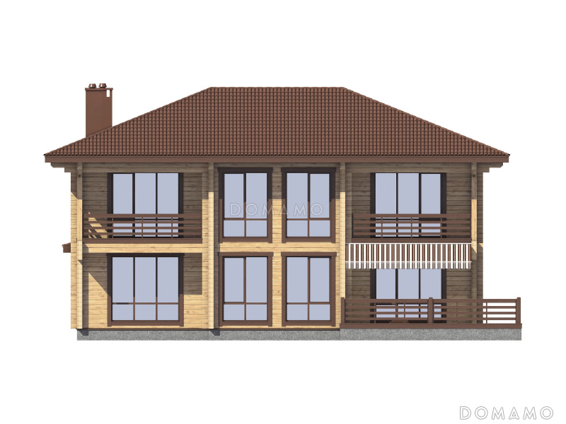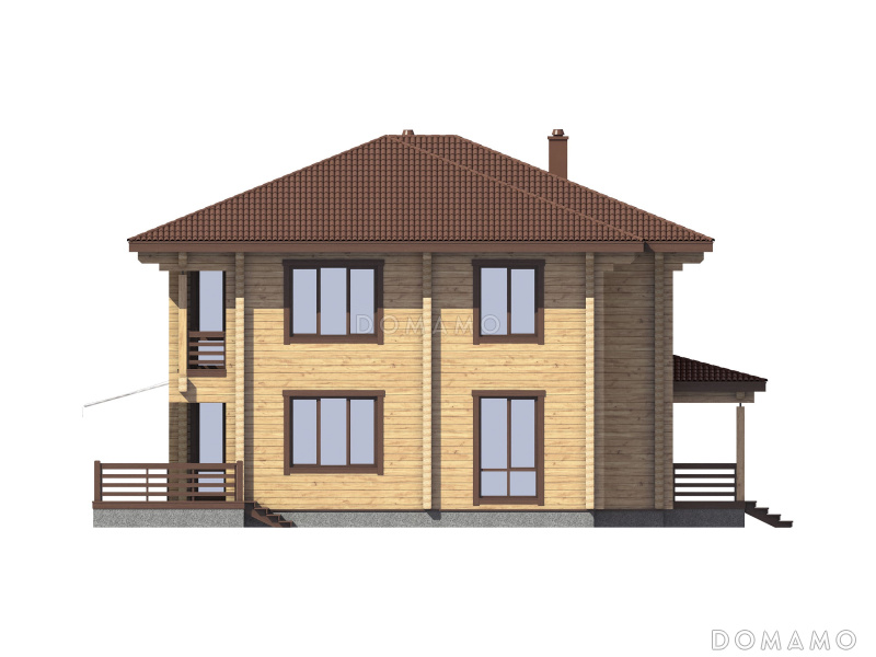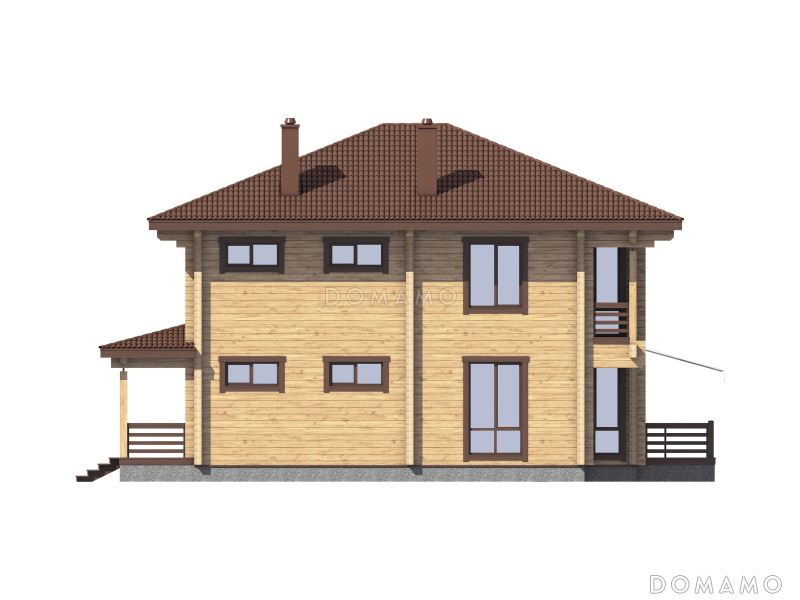 Дом D4864 Проект двухэтажного деревянного дома с большой мастер-спальней и двумя лоджиями