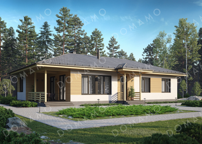 Дом D4899 Проект одноэтажного кирпичного дома с четырьмя спальнями