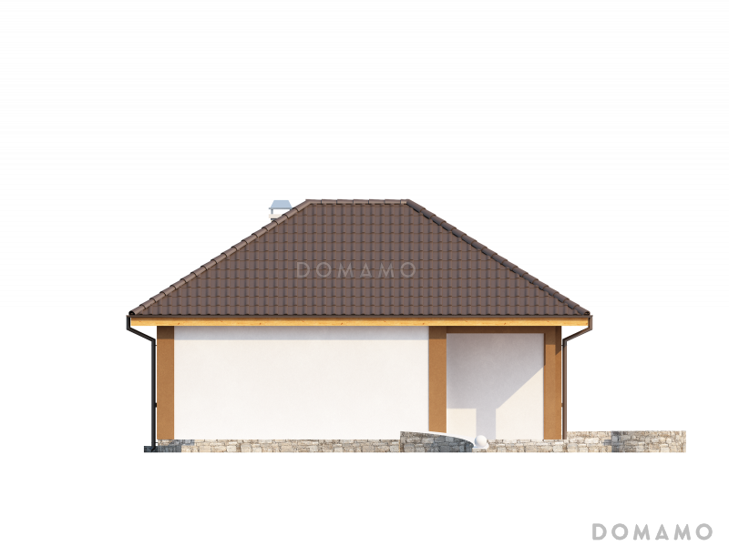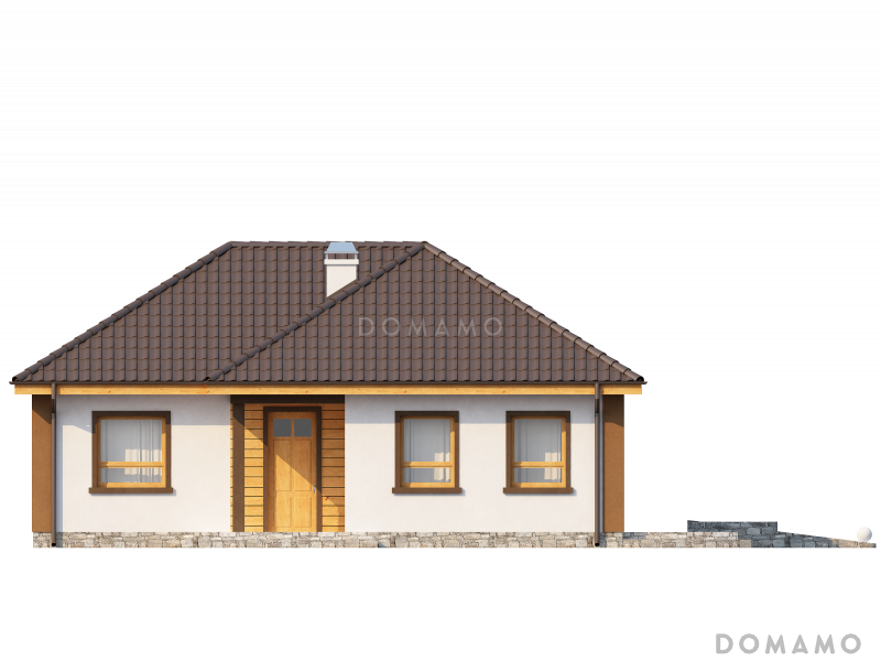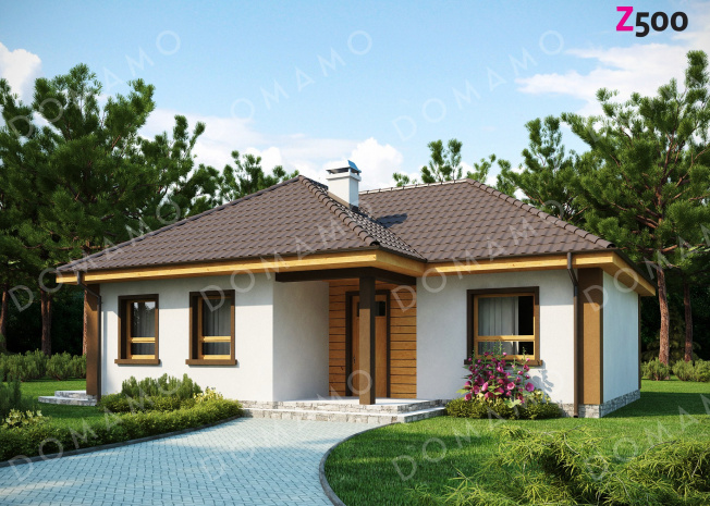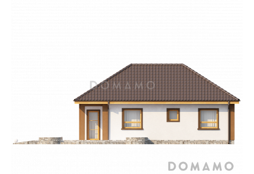 Дом D4911 Проект небольшого одноэтажного дома из кирпича с тремя спальнями и красивой угловой террасой