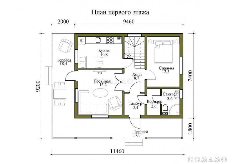 | Высота потолков 2 этажа |