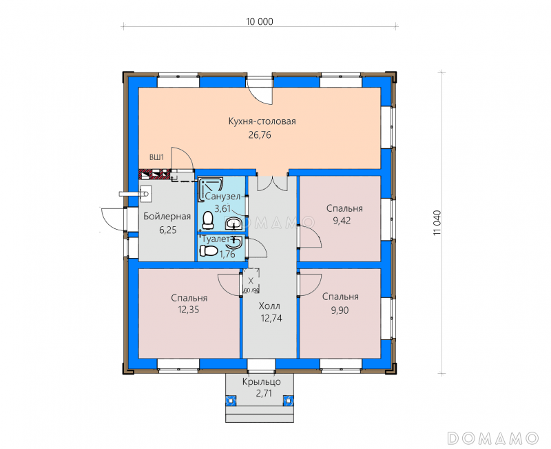 | Разводка батарей и/или системы теплого пола. Без оборудования котельной. |
