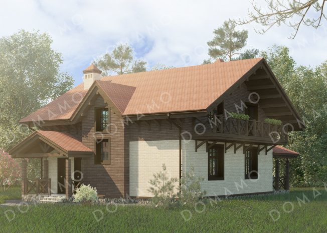 Дом D5385 Проект одноэтажного дома из кирпича с мансардой и четырьмя спальнями