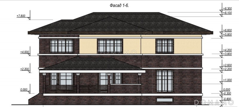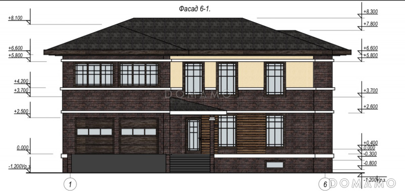 Проект особняка с цокольным этажом, гаражом на две машины, пятью спальнями и террасой с барбекю