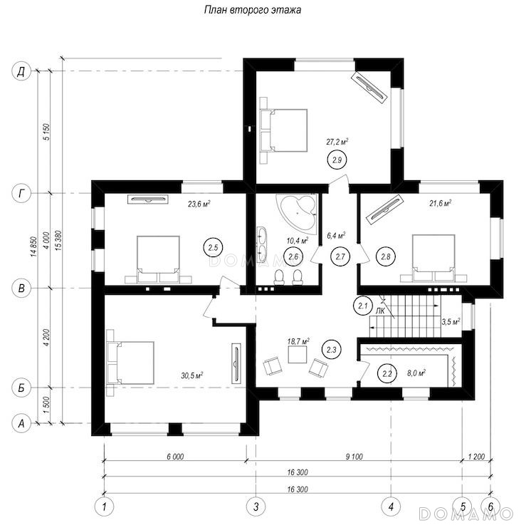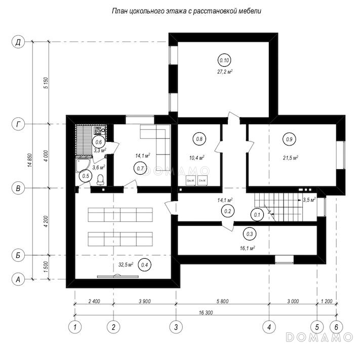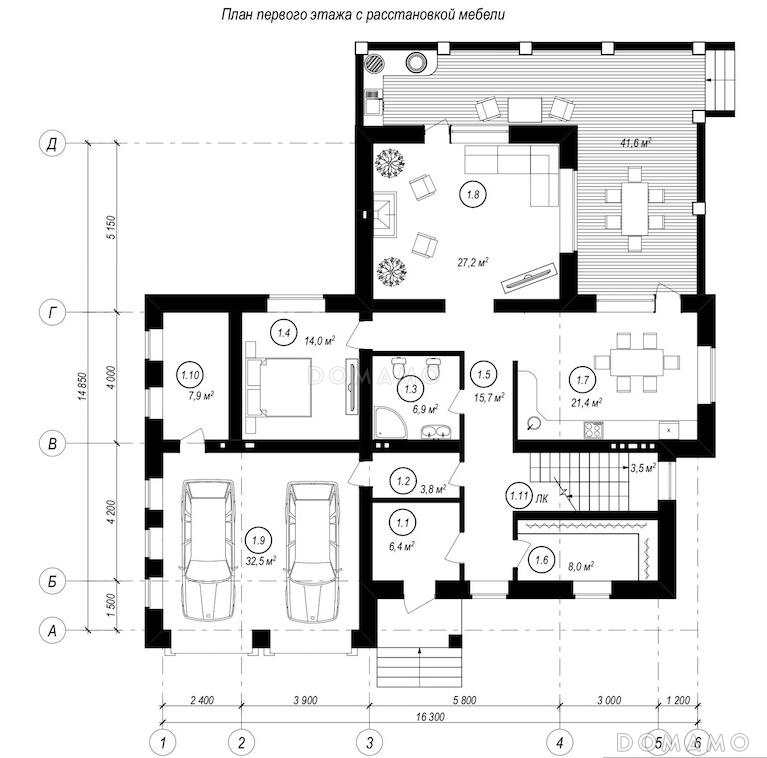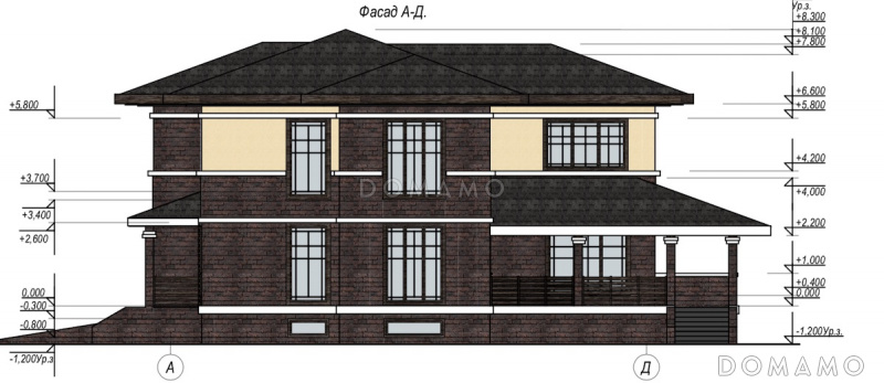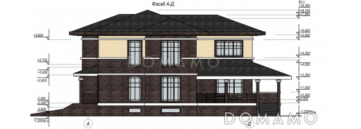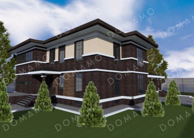 Дом D5450 Проект особняка с цокольным этажом, гаражом на две машины, пятью спальнями и террасой с барбекю