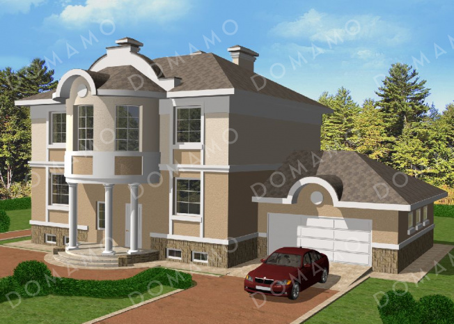 Дом D552 Проект двухэтажного дома из кирпича с полукруглым эркером
