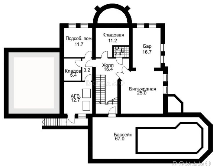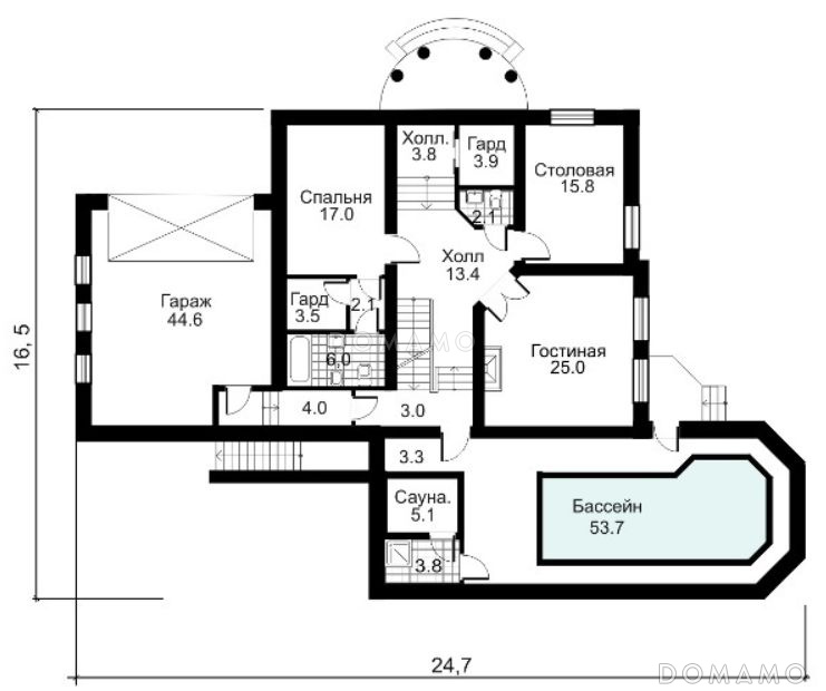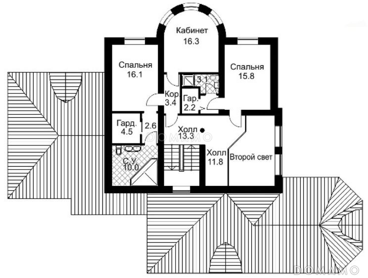 Проект двухэтажного дома из кирпича с полукруглым эркером