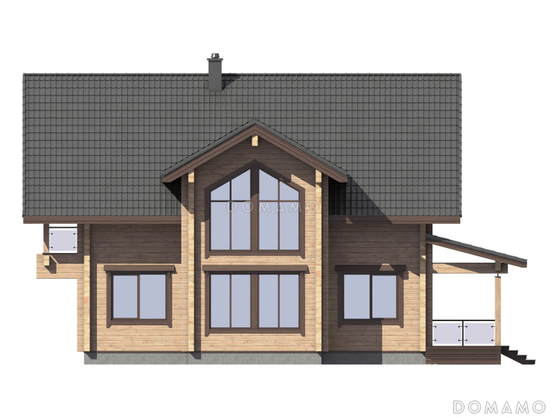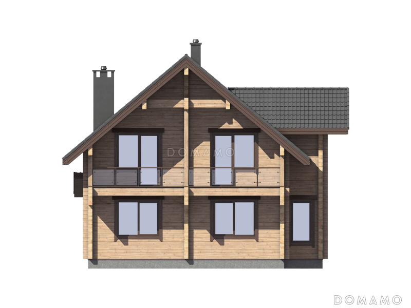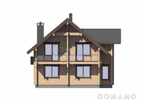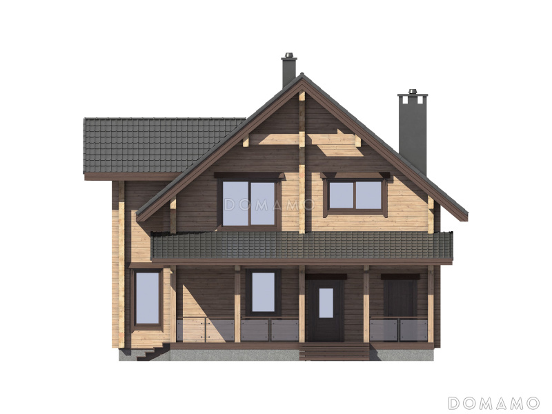 Дом D5537 Проект дома из бруса с 4 спальнями, террасой, балконом и вторым светом