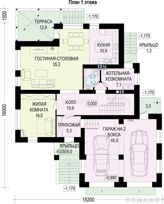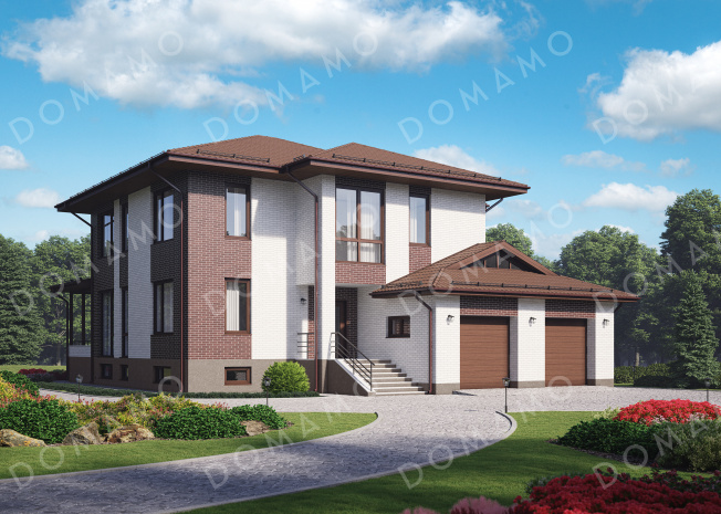 Проект двухэтажного дома из газобетона с подвалом и гаражом на два машиноместа