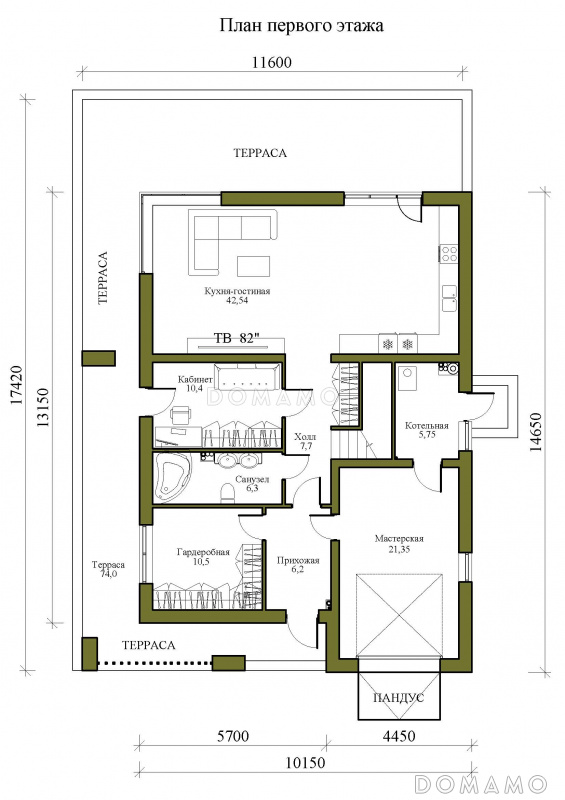 | Высота потолков 1 этажа |