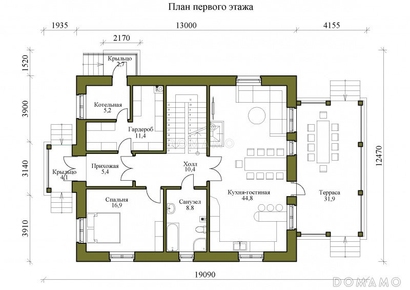 | Только вводы воды, электричества, выводы канализации |