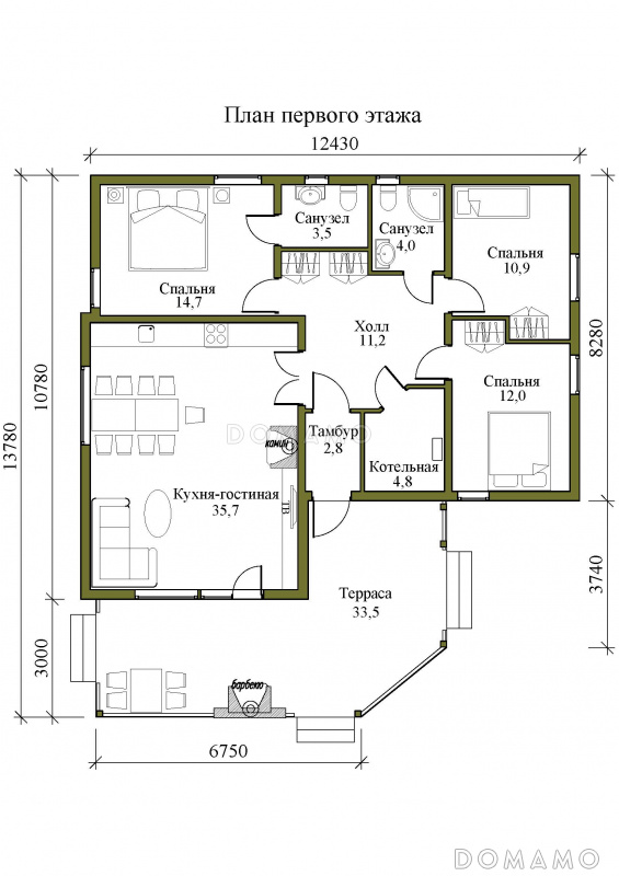 | Только вводы воды, электричества, выводы канализации |