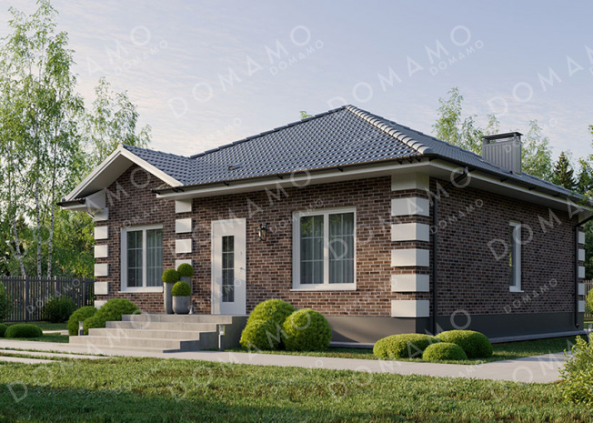 Дом D5964 Проект маленького одноэтажного дома с тремя спальнями, котельно, санузлом и кухней