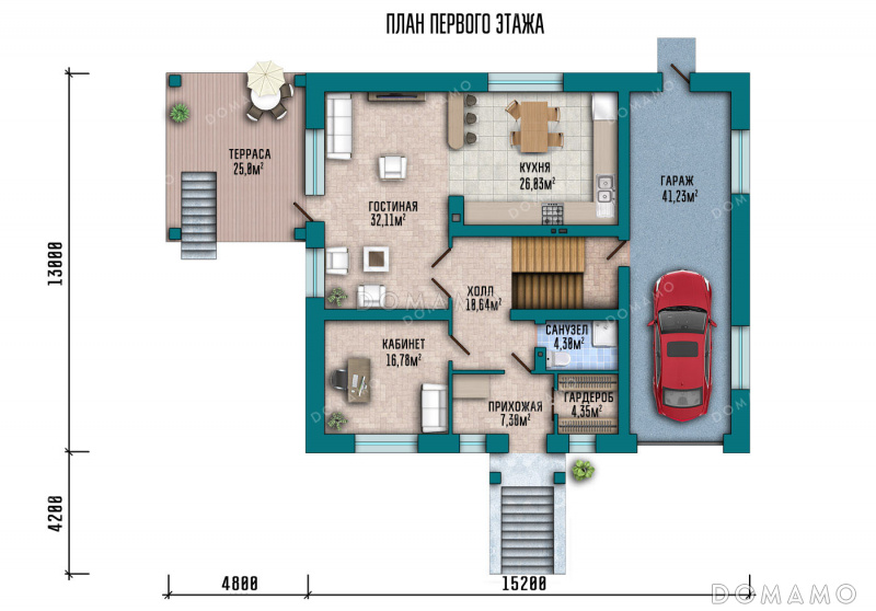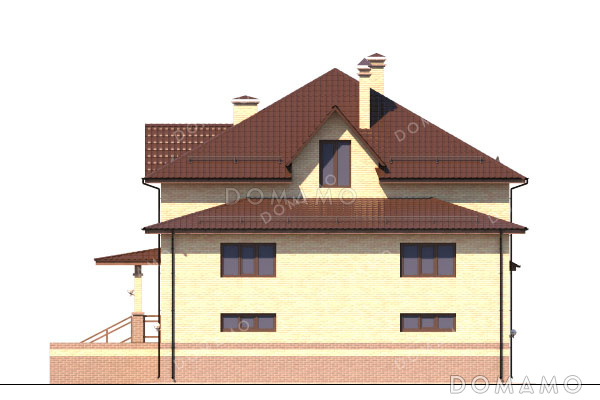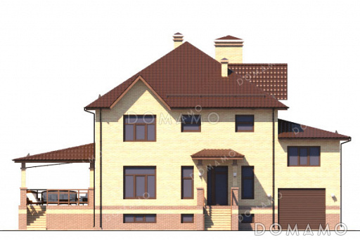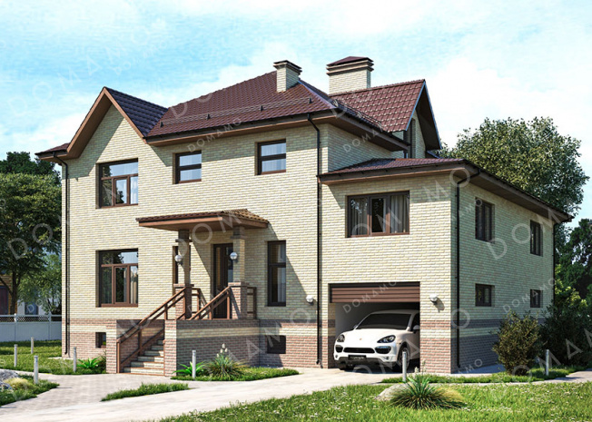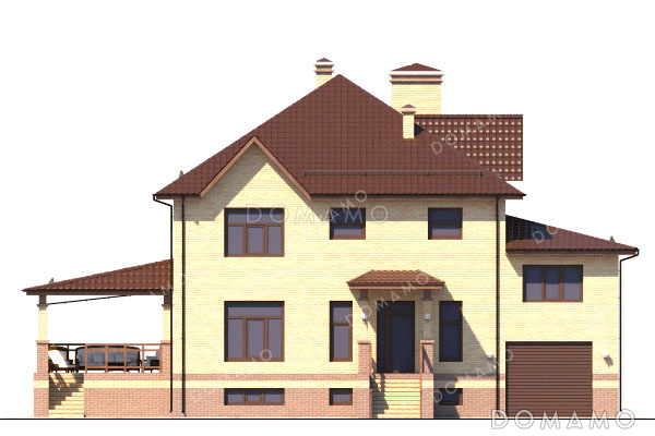 Проект двухэтажного дома с гаражом, оборудованным подвалом и крытой террасой
